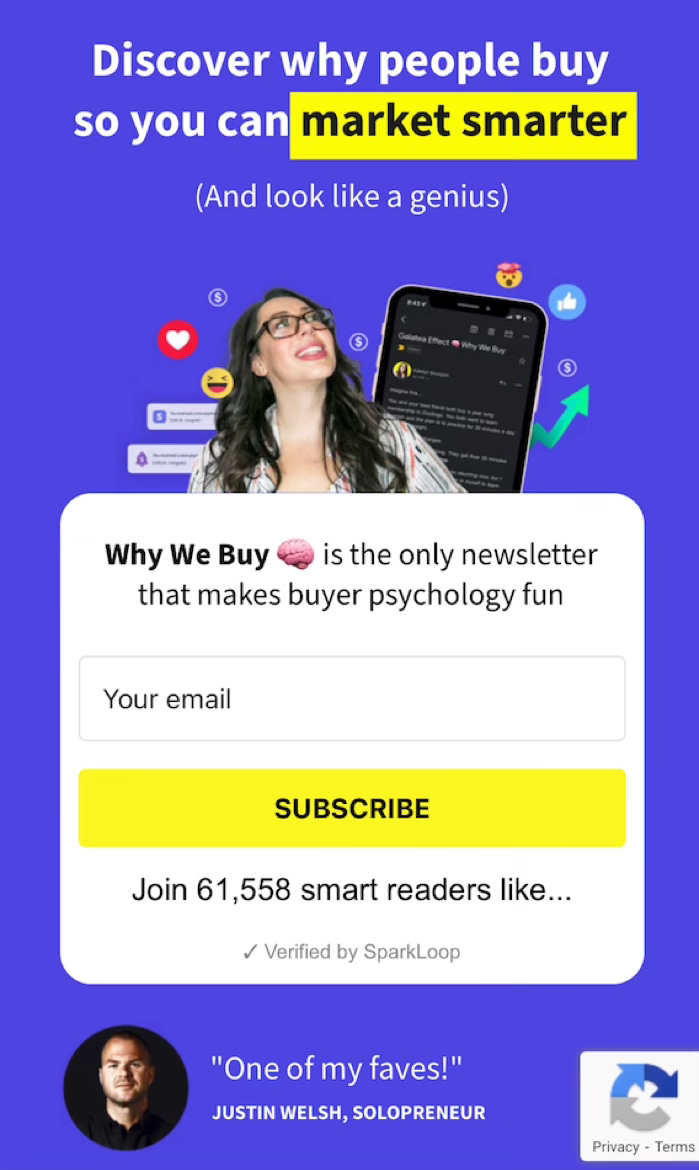 Makes it clear who it’s for - “Marketers voted it the #1 marketing newsletter.” If you’re a marketer, you immediately know this is for you.