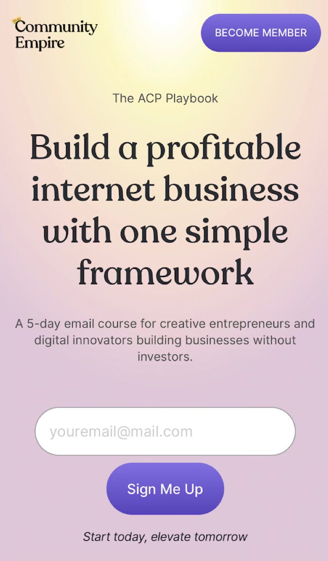 Feels like a product - The email course has a name (”The ACP Playbook”). Naming your lead magnet makes it feel more valuable than just another “free email series.”