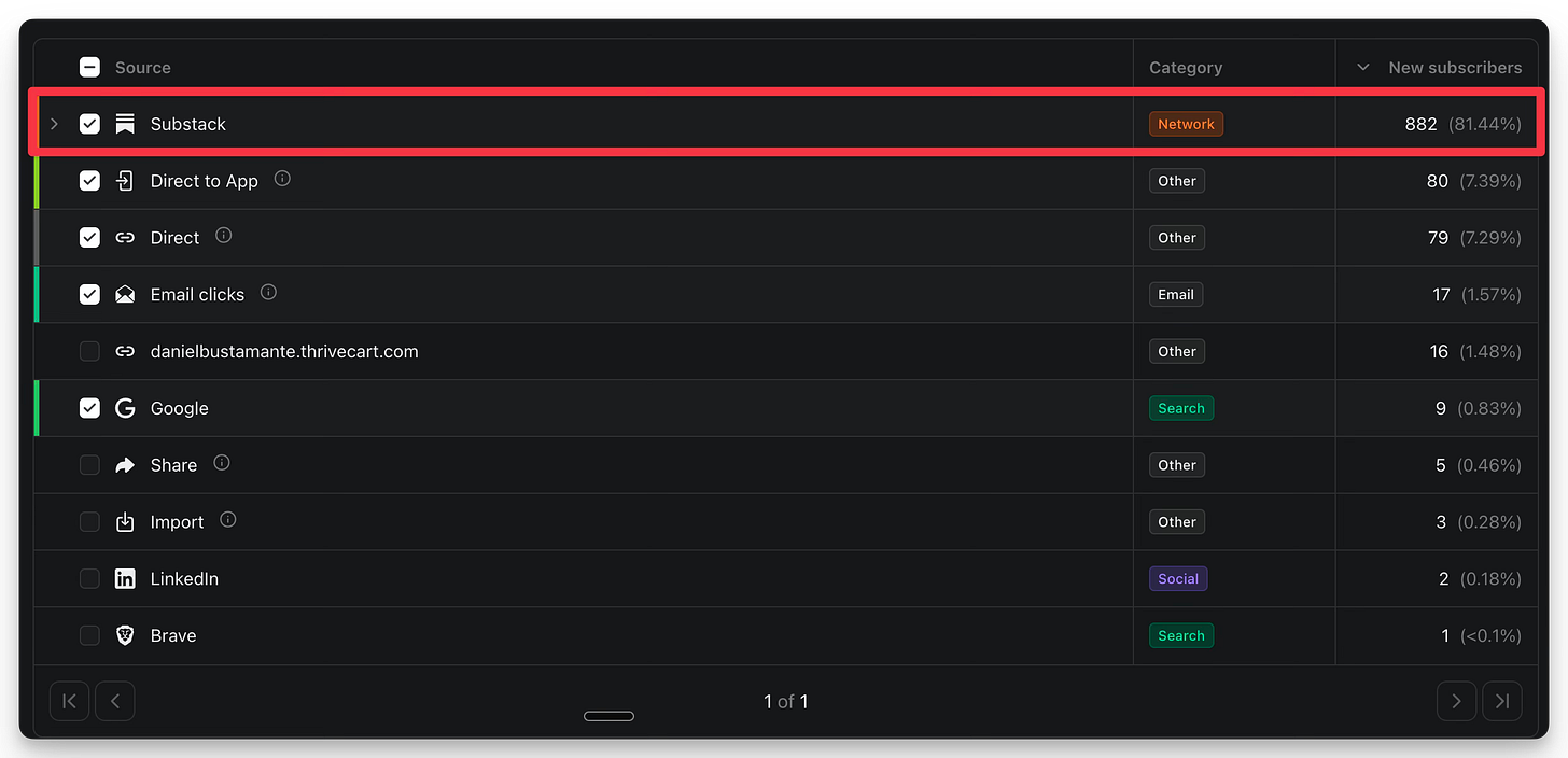And in the past 90 days, I’ve gotten 882 new email subs directly from Substack:
