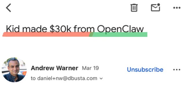 This grabs attention with a specific money figure ($30k). Then it creates curiosity by teasing a surprising outcome - a kidmaking $30k? How?