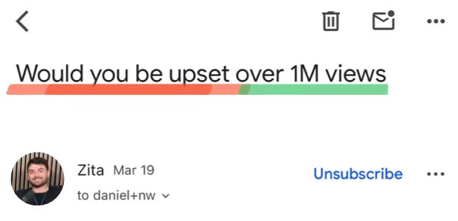 This creates curiosity by asking a counterintuitive question. Why would anyone be upset about 1M views? It doesn’t make sense - so you click to find out.