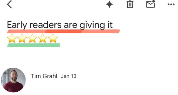 “Early readers are giving it ⭐⭐⭐⭐⭐” — Tim Grahl