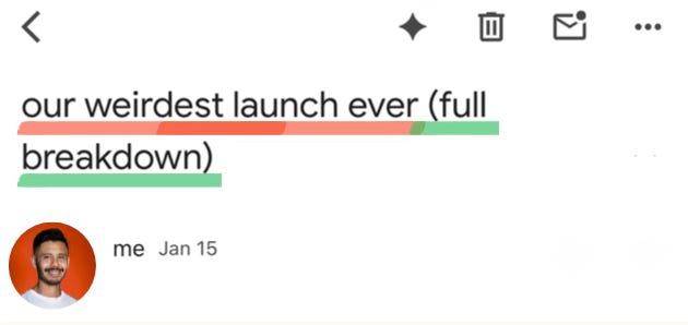 Grabs attention by teasing a unique tactic/strategy (”weirdest launch”).