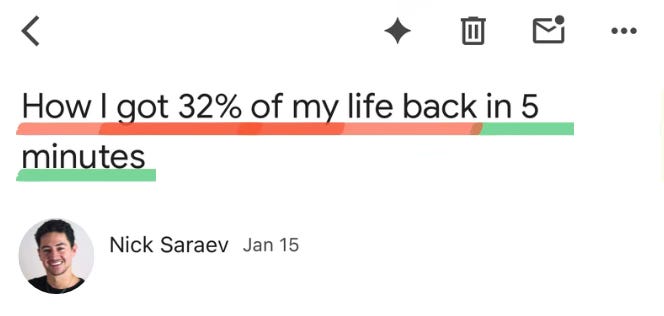 “How I got 32% of my life back in 5 minutes” — Nick Saraev