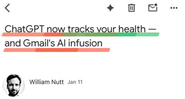 “ChatGPT now tracks your health — and Gmail’s AI infusion” — William Nutt