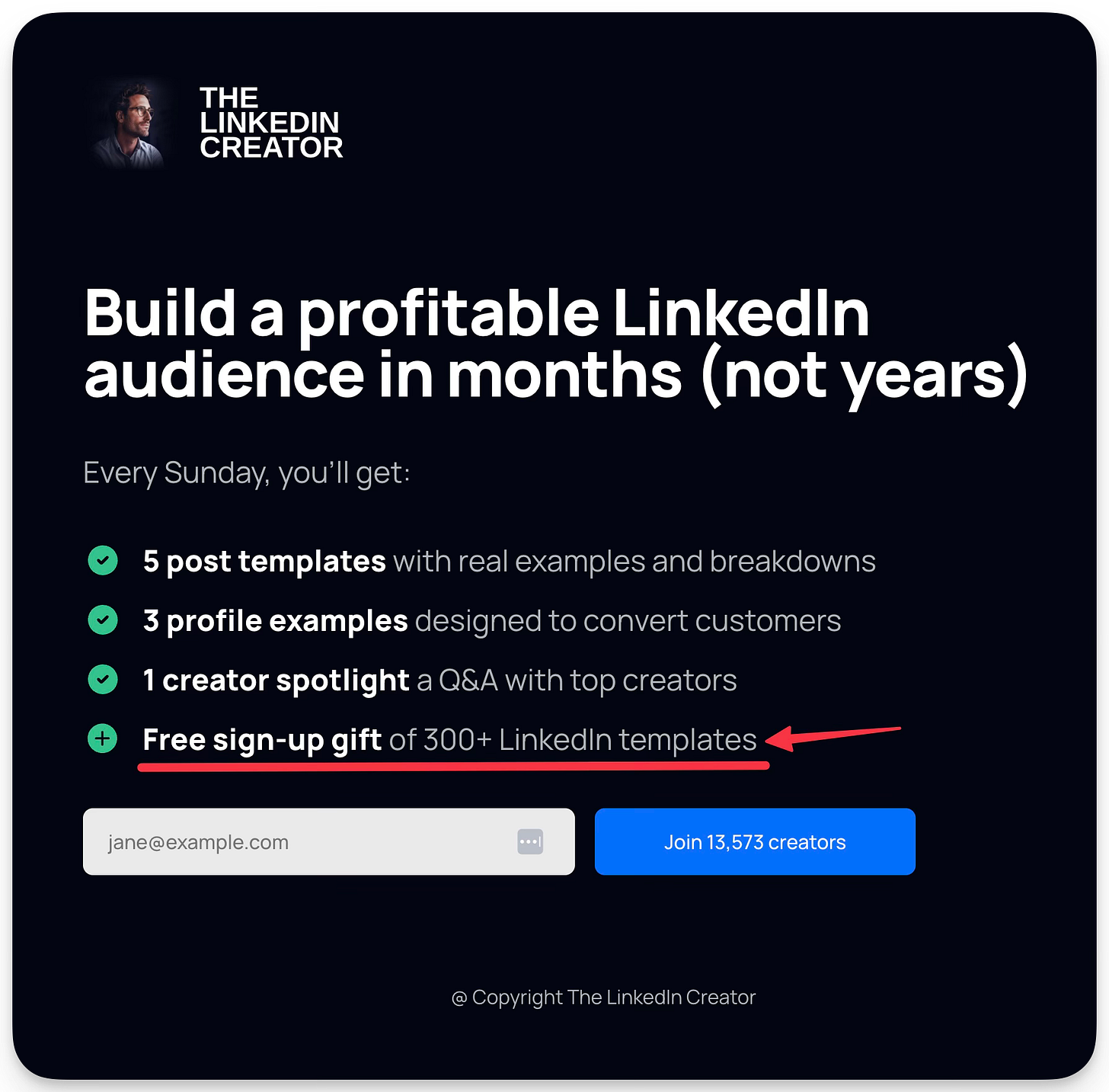 But on top of that, they also give you 300+ LinkedIn templates as a free sign-up gift.