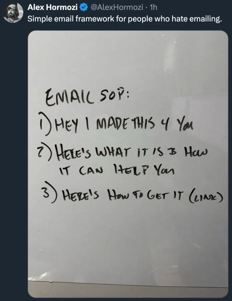 Step 3: Send a simple email using Hormozi’s “I Made This For You” formula.